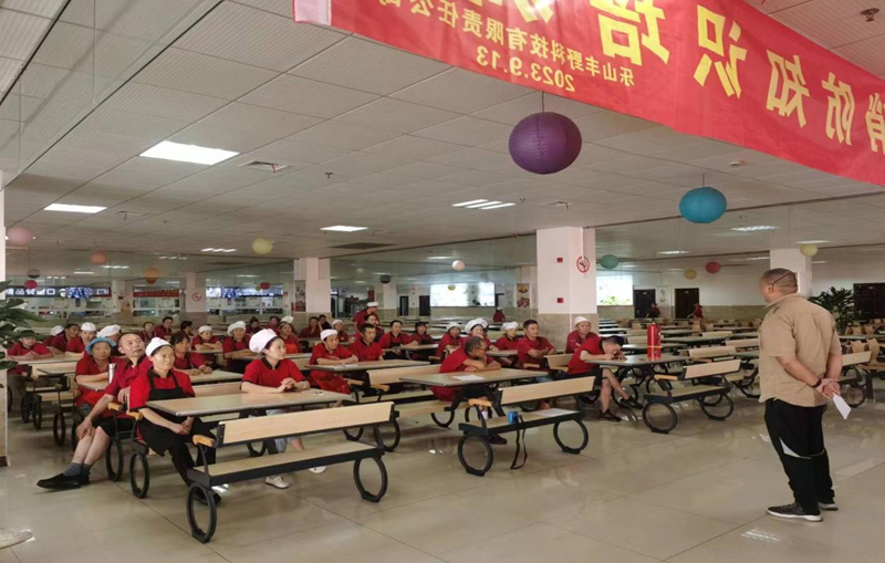 为认真贯彻《中华人民共和国消防法》,进一步推进消防“四个能力”建设,提高教职员工的消防安全意识,掌握自救互救技能,2023年9月13日,保卫处对食堂全体员工开展了消防安全知识培训。