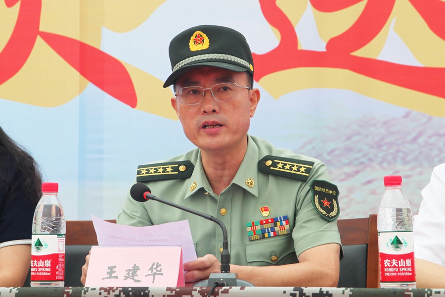 军分区司令员王建华大校对即将入伍的学生表示祝贺,要求大家对党忠诚、作风优良、能打胜仗。同时提出三点希望,一是希望应征学生自觉践行习近平新时代中国特色社会主义思想和习近平的强军思想,始终在思想上行动上同党中央、中央军委和习近平主席保持高度一致,坚决听党指挥跟党走;二是希望应征学生树立远大的理想和目标,志存高远脚踏实地,发挥所学之长,做到军政素质优良,作风纪律过硬,成为一个文武全才的优秀士兵;三是希望应征学生尽快实现角色转变,迅速融入火热的军营生活。同时希望同学们积极进取,在军营建功立业,不负时代、不负韶华。