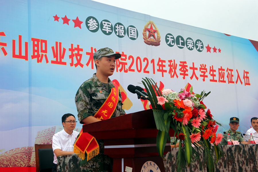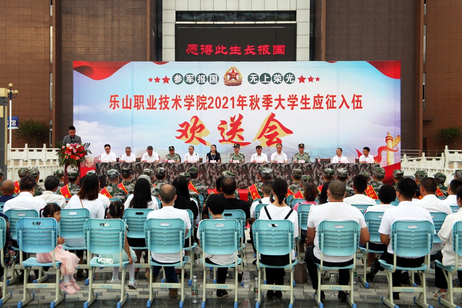 我院42名大学生通过层层考核,即将以秋季新兵的身份启程奔赴军营,开启军旅生涯。9月10日上午,我院召开2021年秋季新兵入伍欢送会,中共乐山市委常委、军分区司令员王建华,市政府副市长邓华、市政府副秘书长陈红军,军分区动员处处长陈登文,市中区武装部政委田旺清,学院院级领导及相关处室负责人,系(部、院)书记、专职副书记出席了欢送活动。