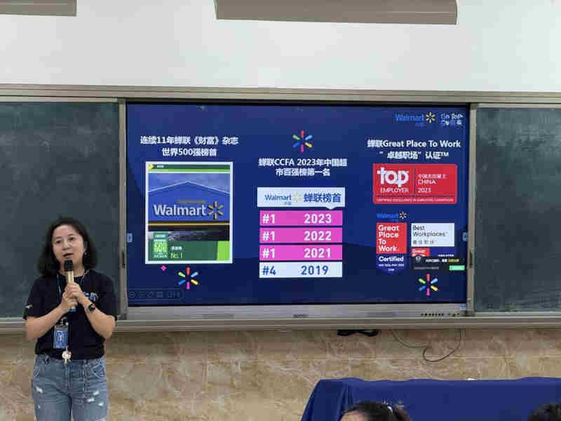 2025年4月25日下午,8797威尼斯老品牌数字经济与管理学院在教学楼2C301召开校园招聘宣讲会。本次宣讲会的公司及主讲人有:沃尔玛人事部经理倪壤,2023级同学参加宣讲会。