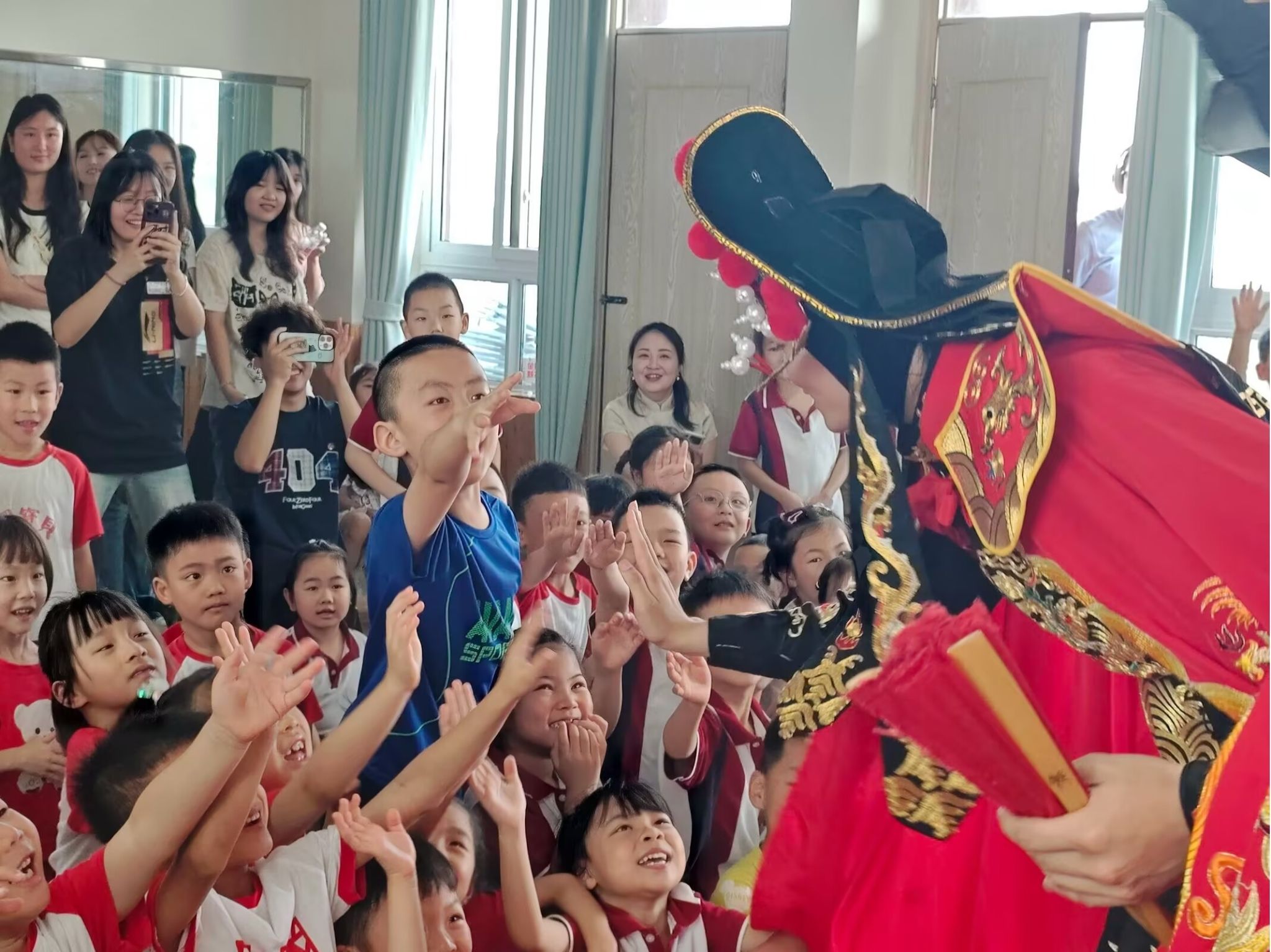 川剧变脸表演将活动推向高潮,绚丽脸谱与精湛技艺令孩子们惊叹不已,深切感受到非遗文化的魅力。
