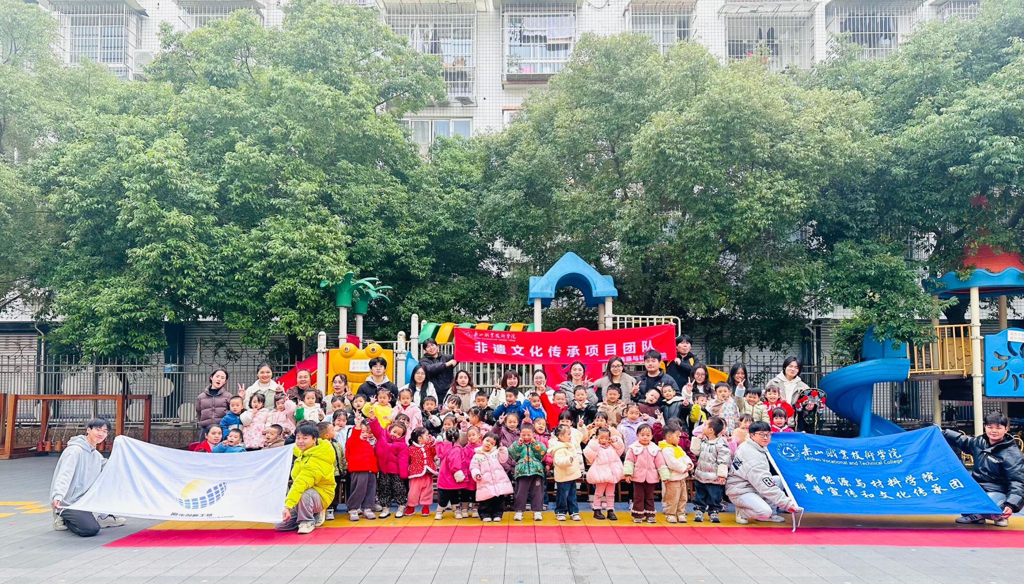 为持续激发小朋友们的科学兴趣、弘扬中华优秀传统文化,2025年12月10日上午,新能源与材料学院“科普宣讲与文化传承”团队在党员教师邓茹、张艳琳、赵田丽的带领下,走进肖坝贝贝佳幼儿园,开展了一场融合科技启蒙与非遗体验的社会实践培训活动。