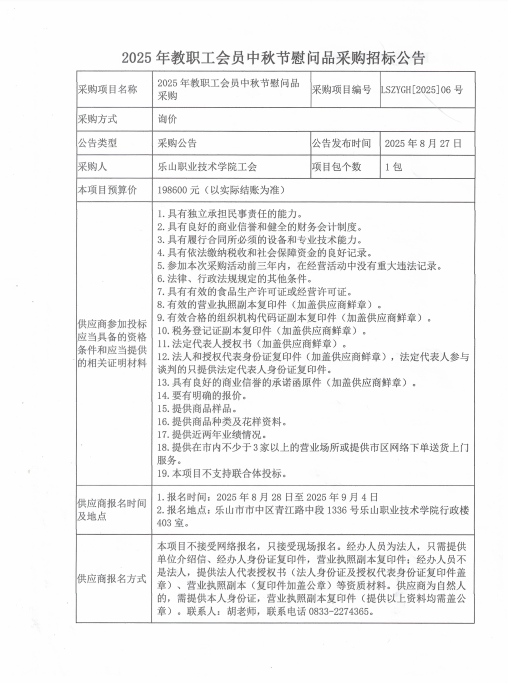 2025年教职工会员夏送清凉慰问品采购招标公告