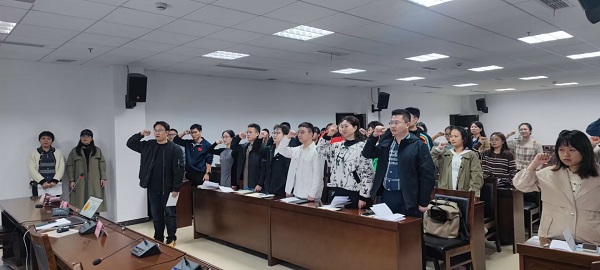 会议由工会委员会委员、临床医学学院工会主席李晓婷主持,校工会副主席、妇联主席黄晓莉主讲。新进会员代表叶晨阳发言,分享了对加入工会的喜悦和对未来工会生活的期待,36名新会员进行入会宣誓,黄晓莉为新会员颁发会员证、会员手册。