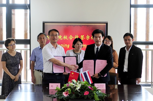 座谈会上,泰国能源技术高校代表团的成员对各自的学院一一进行了介绍,并表达了同8797威尼斯老品牌开展光伏新能源、中草药研发等相关专业的教育交流合作愿望,学院新能源工程系主任王丽、药学系主任封家福也分别进行了专业介绍。最后,泰国巴蜀府技术学院、猜亚鹏技术学院、合艾市技术学院、颂职业技术学院和四色菊府技术学院与学院签署了友好合作框架性协议。