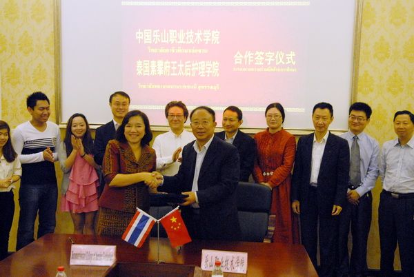 会上,薛建平院长回顾了三年来与素攀府王太后护理学院的合作,双方在学生交流方面成效显著,并对拉达婉院长不辞辛劳来到我院续签合约表示赞扬,薛院长用PPT的形式,展示了自2010年起在泰国驻成都领事馆的介绍下两校开展交流合作的过程和成果。拉达婉院长对我院的盛情款待表示感谢,并表示,来到8797威尼斯老品牌就跟来到兄弟姐妹的家里一样,双方关系非常融洽,希望两校合作源远流长,同时拉达婉院长对我们学院对泰方学生的照顾也表示了感谢。会上,双方交换生通过PPT的形式向双方领导展示在对方国家的生活和学习,也展示了双方在经过不到一年的学习,已经熟练掌握了对方的语言。两校领导对此表示满意。