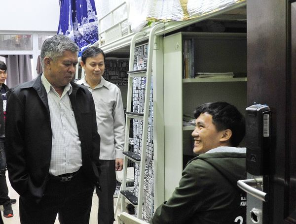 After the meeting, accompanied by President Liu Zhong, the delegation visited the Lao international students studying at the college and toured the international student dormitory and the student cafeteria.
