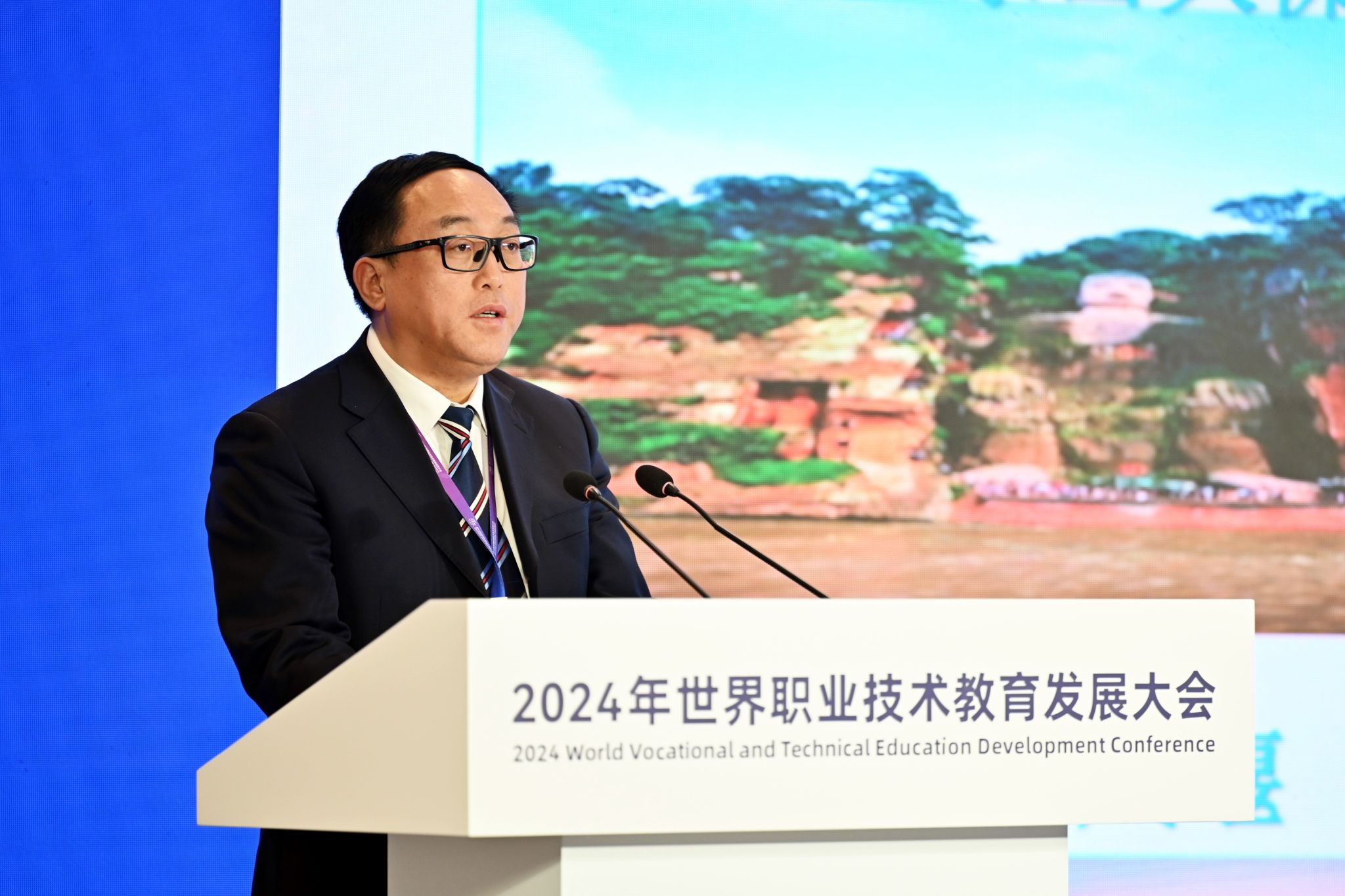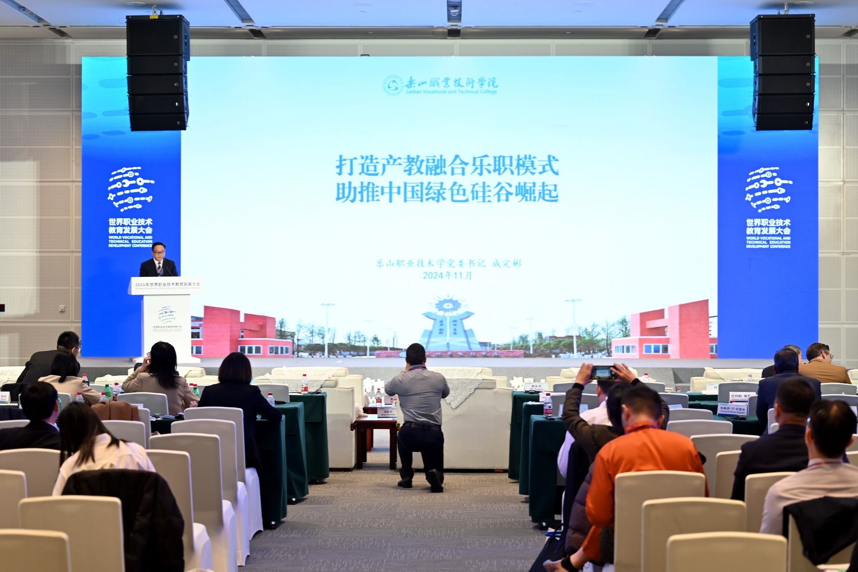 On November 21, 2024, the World Vocational Education Development Conference opened in Tianjin. The theme was "Innovation Empowers the Future, Skills Shape Life." Over 1,200 domestic and international representatives attended, including more than 600 overseas guests from over 100 countries and regions. They were government officials, diplomatic envoys, and representatives from international organizations and educational institutions. Cheng Dingbin, Secretary of the Party Committee of Leshan Vocational and Technical College, was invited to attend and deliver a keynote speech at a parallel session.