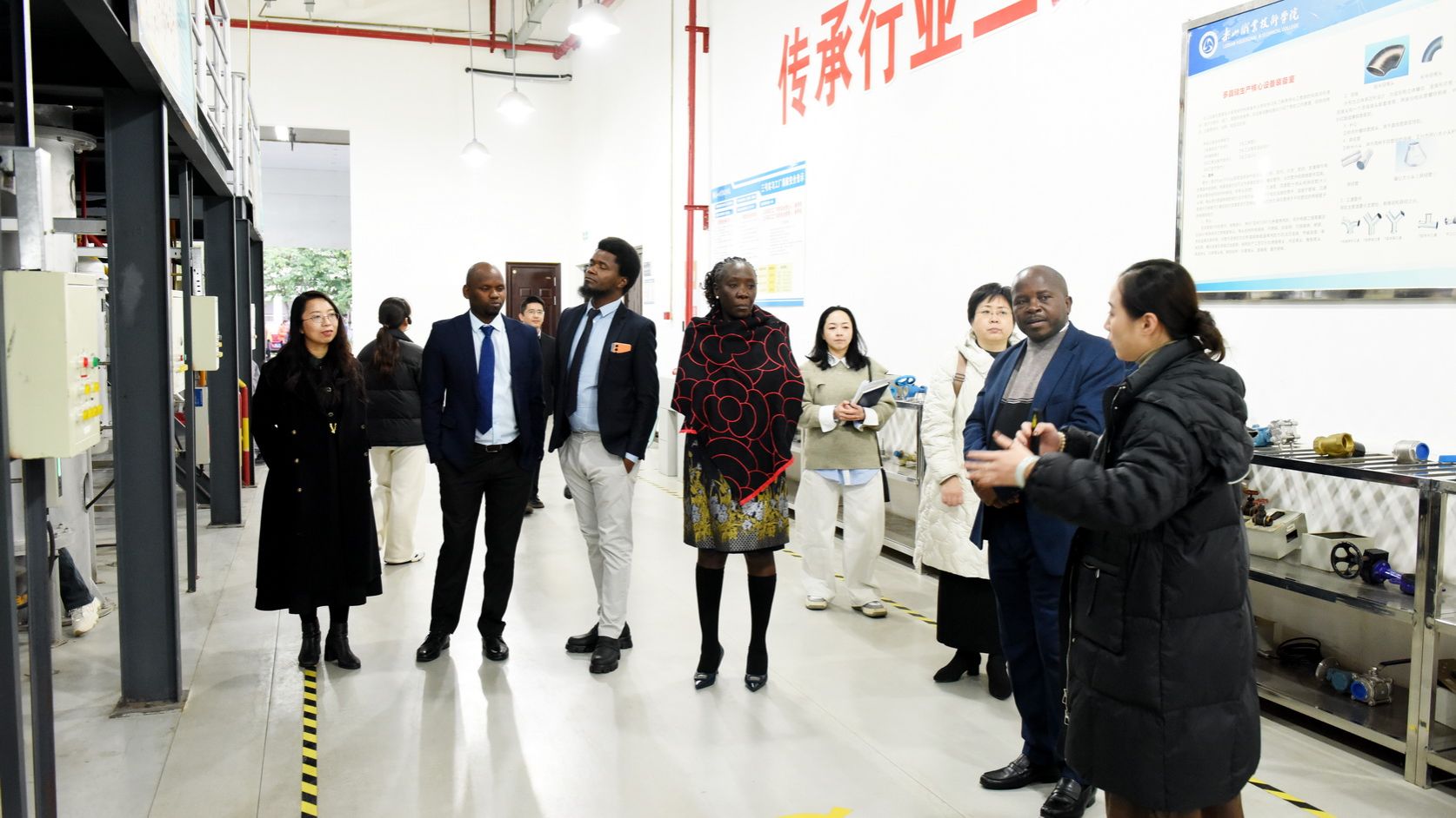 On the afternoon of November 25, accompanied by Zhou Qin, Vice President of the school, the delegation visited the Qingjiang Martial Arts Base, observing an international student martial arts class. They also visited the Jiazhou Memory Local Sentiments Museum to learn about Leshan's history and intangible cultural heritage. At the Smart Energy Center, they gained a comprehensive understanding of the school's water - source heat pump system. They also visited the Medical Training Center, Collaborative Innovation Center for Intelligent Manufacturing, Industrial Robot System Integration Training Center, and the Photovoltaic New Energy Virtual Simulation Training Center.