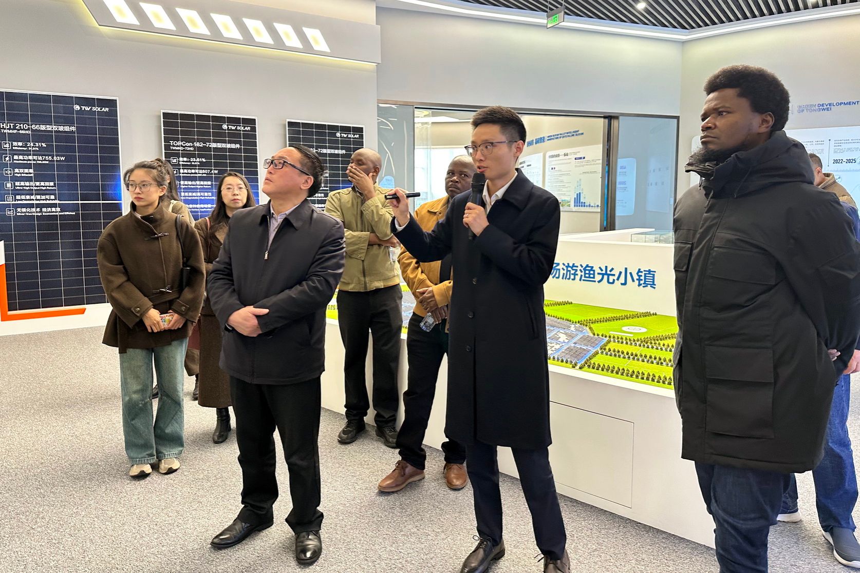 On November 26, accompanied by Cheng Dingbin, the delegation visited the Wutongqiao Photovoltaic Economic Development Zone Exhibition Hall and Yongxiang New Energy Company.