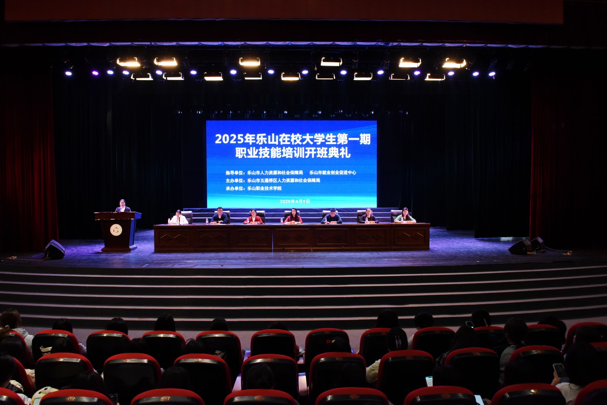 To thoroughly implement the decisions and plans of the State Council, the provincial government, and the municipal government, and to vigorously promote the vocational skills improvement initiative in Leshan, the opening ceremony of the first vocational skills training class for college students in Leshan in 2025 was held in the auditorium of Leshan Vocational and Technical College on the afternoon of April 9th.