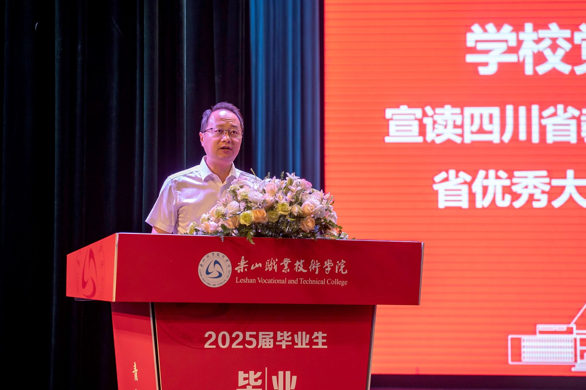 Zhang Jia, Deputy Secretary of the Party Committee of the school, read out the Notice on Announcing the Recognition Results of Outstanding University Graduates of Sichuan Province in the Class of 2025, in which 188 graduates were awarded the title of "Outstanding University Graduate of Sichuan Province".