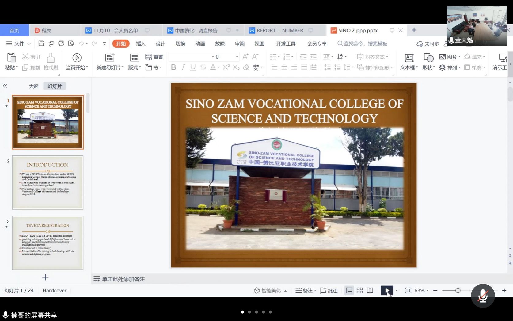 On the afternoon of November 10th, 2021, the Nonferrous Metals Industry Talent Center organized a work promotion meeting for China-Zambia Vocational and Technical College. Attending the meeting were Zhao Lixia, Director of the Nonferrous Metals Industry Talent Center, Zhu Lihua, Deputy Director, YAWA, the principal from the Zambian side, Wang Nan, the specialist stationed in Zambia by the Nonferrous Metals Industry Talent Center, and business leaders from 10 domestic colleges including Beijing Industrial Vocational and Technical College. From Leshan Vocational and Technical College, Chen Xiaolu, Director of the Academic Affairs Office, Deng Panpan, Deputy Director, Cui Mingxian, Director of the New Energy Engineering Department, and full-time teacher Hu Fu attended the meeting. The meeting was chaired by Zhao Lixia, a director of China-Zambia Vocational and Technical College.