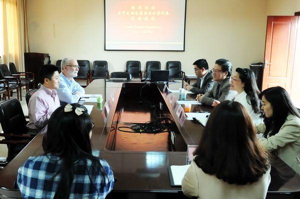At the meeting, Deputy Secretary Chen Zhihai extended a warm welcome to Mr. Stephen and his colleagues. He reviewed the cooperation between our institute and the US-China Friendship Volunteers program since 2011 and expressed gratitude for the support the program had provided to our English teaching. He also praised the teaching work of our current volunteer, Sarah. Stephen expressed his sincere thanks for the attention and support our institute had given to the volunteer teachers' work and life. Finally, both sides of the symposium reiterated the three major goals of the US-China Friendship Volunteers program: the volunteers are not only engaged in English teaching but also learn Chinese language and culture, becoming ambassadors of friendship and cultural exchange between the United States and China.