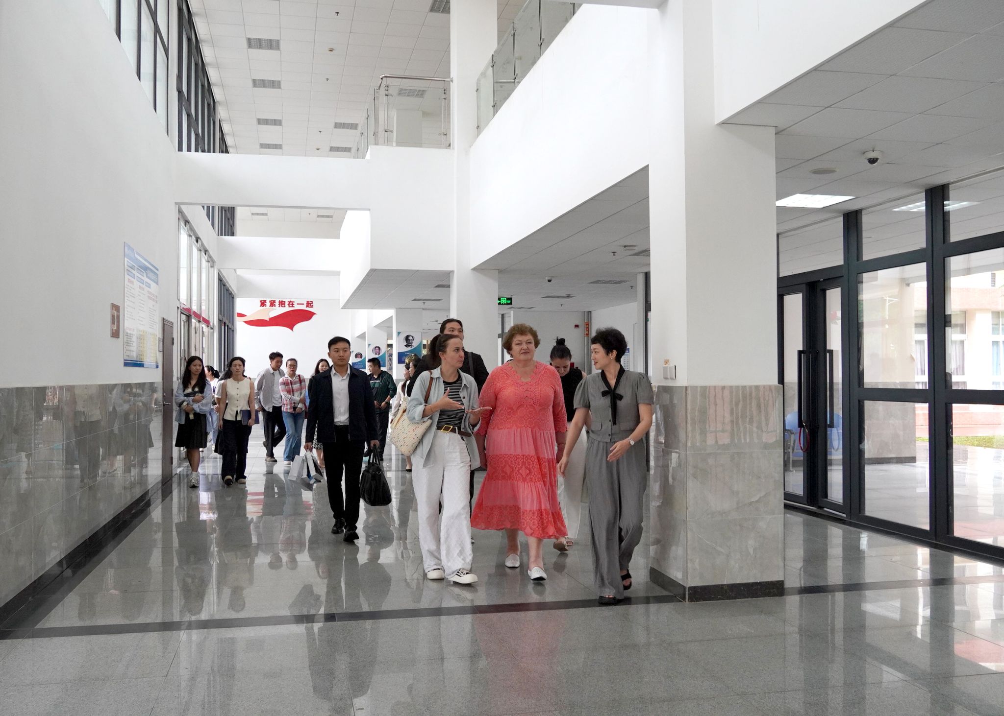 First, members of the delegation from Gomel State Medical University visited the medical training building. They carefully listened to the introduction of the functional layout and development philosophy of the training center, and showed particular interest in the distinctive Red Cross Emergency Rescue Training Base and the time-honored Traditional Chinese Medicine Therapy Training Base. They stopped to observe and frequently exchanged questions.