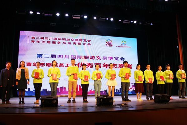 At 2:30 p.m. on October 29th, 2015, the summary and commendation meeting for the 2nd Sichuan International Tourism Exchange Expo volunteer service was grandly held in the multi-functional hall of Leshan Normal University. Attending the meeting were Guo Jie, Deputy Director of the Standing Committee of the Municipal People's Congress, Wang Yuanchao, Deputy Section Chief of the International Liaison Department of the Communist Youth League Central Committee, Zhu Mingyou, Director of the Municipal Transportation and War Preparedness Office, Deng Jing, Researcher of the Municipal Reception Office, leaders of the Communist Youth League Leshan Municipal Committee, and relevant officials from the Youth Leagues of Leshan Normal University, Southwest Jiaotong University Emei Campus, Chengdu University of Technology Engineering Technology College, and Leshan Vocational and Technical College.