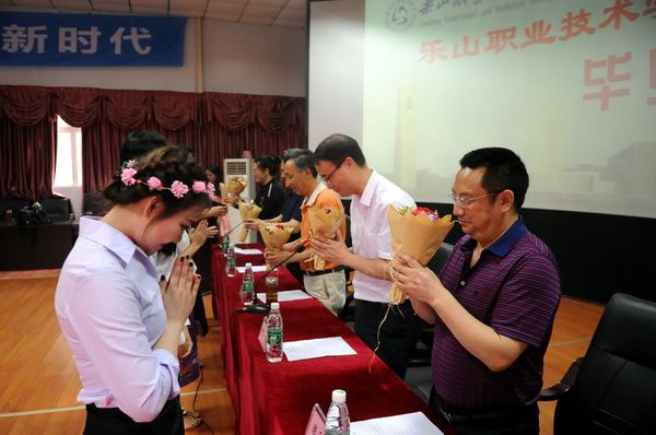 Chen Zhihai read out the list of graduating international students, and Liu Zhong presented each graduate with their diploma. To express their gratitude for the teachers' careful guidance and enthusiastic help during their time at the college, the graduating students, who were about to return to their home countries, presented flowers to each teacher one by one and gave gifts to their alma mater.