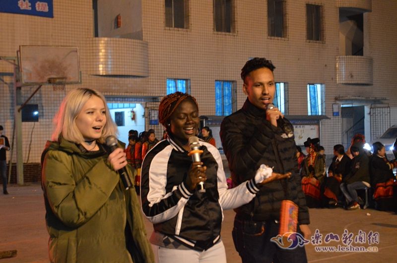 The Yi people are known as the "people of fire." How could a visit from friends afar be complete without a blazing bonfire? As night fell, a bonfire was lit on the playground of Xihexiang Middle School in Heizugou Town. The foreign teachers and students, along with the local students, gathered around the fire, holding hands and singing and dancing together.