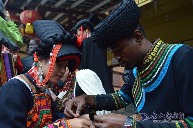 After enjoying the Yi cuisine, the group visited a Yi village. They then headed to the Yi New Village in Didi Valley, Heizugou Town. There, they donned traditional Yi costumes and draped themselves in Yi shawls, experiencing the hand embroidery of Yi women. Of course, the most memorable experience was participating in a traditional Yi bonding ceremony with the villagers.