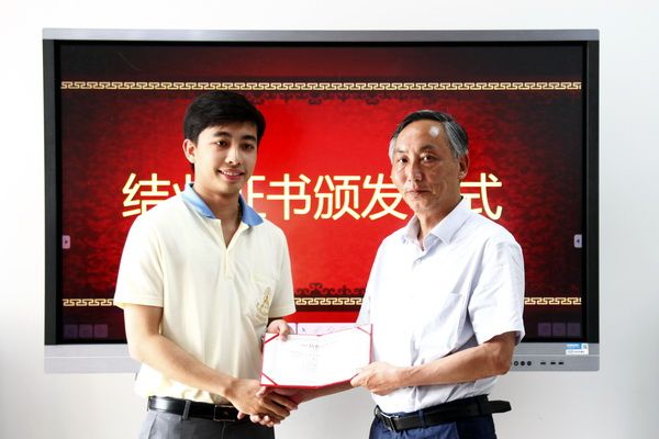 Deputy Secretary Chen Zhihai read out the list of graduates, and Jian Lu and Liu Zhong presented graduation certificates to exchange teacher Pan Le Peng and the five exchange students.