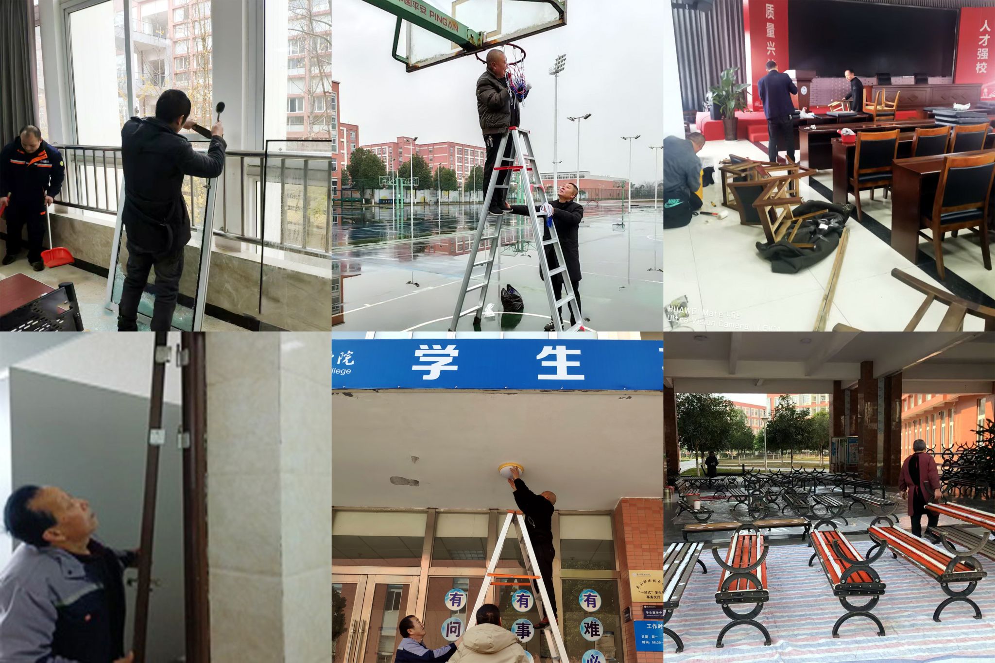 Repaired desks and chairs in classrooms and dormitories, as well as sports facilities and equipment.