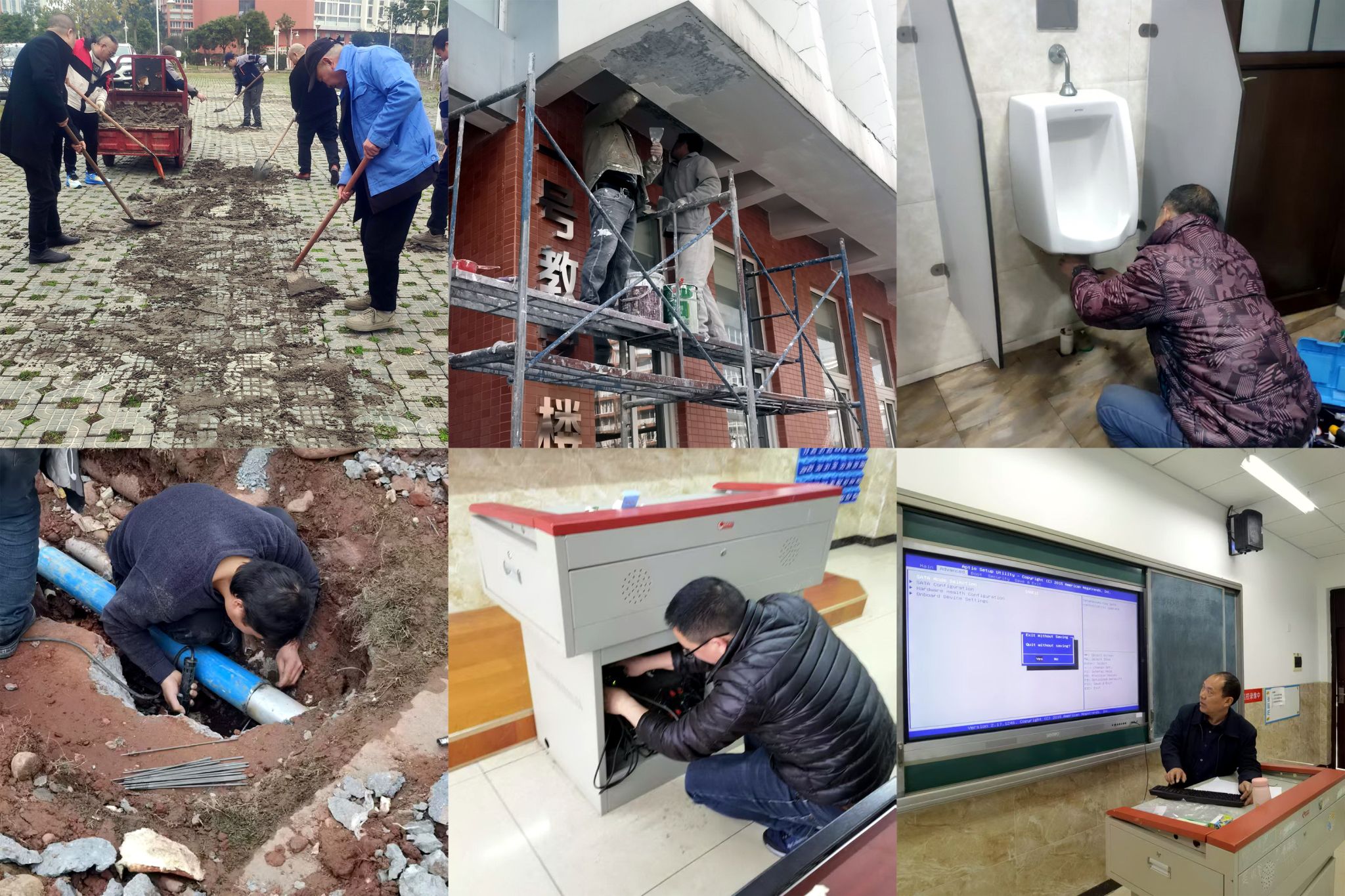 Inspected and repaired peeling walls, damaged roads, and detached tiles across the campus.