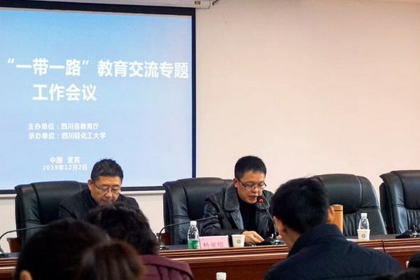 On December 2, the "Provincial Special Work Conference on Promoting 'Belt and Road' Education Exchange" was held in Yibin, hosted by the Sichuan Provincial Department of Education. Attendees included Yang Yapei, a second - rank inspector from the Sichuan Provincial Department of Education, Liao Fei, a first - rank researcher from the Department of International Cooperation and Exchange, representatives from local education bureaus, and leaders and heads of foreign affairs departments from 32 universities.