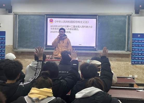 在活动中,辅导员结合PPT讲解、视频播放和现场演示等多种形式,为学生们深入剖析了恐怖主义的本质、类型以及应对方法。不仅详细介绍了《中华人民共和国反恐怖主义法》的相关内容,还重点讲解了自防自救的“逃躲战”策略,包括在遭遇恐怖袭击时的逃跑、躲藏和战斗技巧。同时,学生们还学习了如何防范校园内的其他暴恐袭击,如防冲撞和防爆炸等安全知识。
