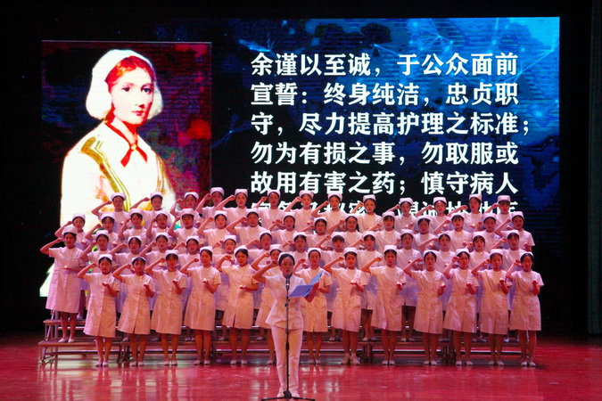5月12日15时30分,“5.12”国际护士节纪念活动暨护理技能竞赛表扬大会在大礼堂举行,由医护系同学的舞蹈表演《为爱出征》震撼开场。