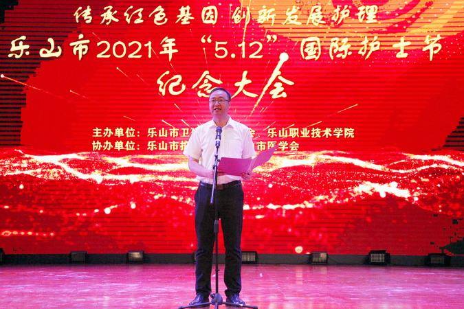 曾伟代表市卫健委讲话,向全市护理工作者致以节日问候,对护理工作者在新冠疫情防控、临床护理、健康促进、全民健康覆盖中发挥的重要作用表达了由衷的敬意,赞扬本次护理技能对推动全市职工岗位大练兵、大比武发挥的积极作用,要求卫生行政部门、各级医疗机构加强护理队伍建设,为护理工作、护士待遇保障及职业发展提供良好的发展路径和平台,希望受表彰的100名“乐山好护士”以及护理技能大赛获奖团队及个人发挥模范引领作用,号召全市护理工作者听党话跟党走,在健康中国、健康四川、健康乐山建设中有新担当、新作为、新贡献!