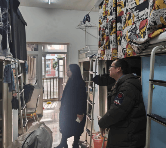 随着2025年元旦及寒假临近,为进一步增强同学们安全意识,了解同学们学习生活状态,确保离校前同学们能做好寝室安全卫生事项,2024年12月31日中午,护理康养学院党总支书记罗健玮带队,与学工办老师、辅导员一起,开展了护理康养学院学生寝室安全、卫生巡视检查。
