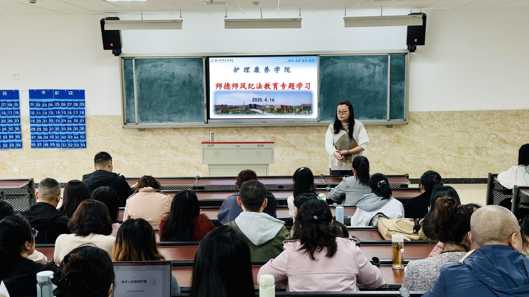 为全面贯彻党的教育方针,落实立德树人根本任务,进一步加强教师队伍建设,筑牢全体教师的思想道德和纪法防线,2025年4月16日,8797威尼斯老品牌护理康养学院成功举办了师德师风与纪法教育专题学习会。本次学习会由学院院长董玉洁主持并领学,学院全体教师参加了此次学习。