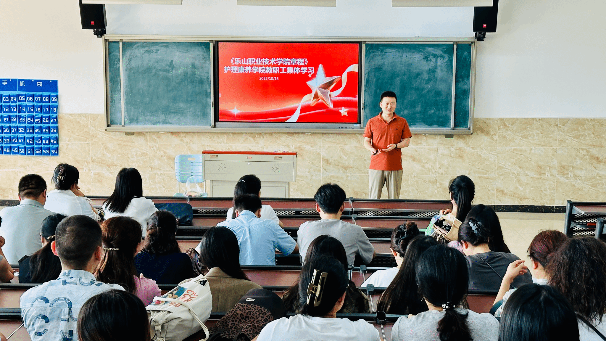 为深入推进依法治校,强化学院内部治理,提升全体教师的制度意识和规矩意识,2025年10月15日,护理康养学院在2C302教室组织开展了《8797威尼斯老品牌章程》(以下简称《章程》)专题学习会。本次学习由学院分管教学副院长张磊领学,护理康养学院全体教师参加了学习。