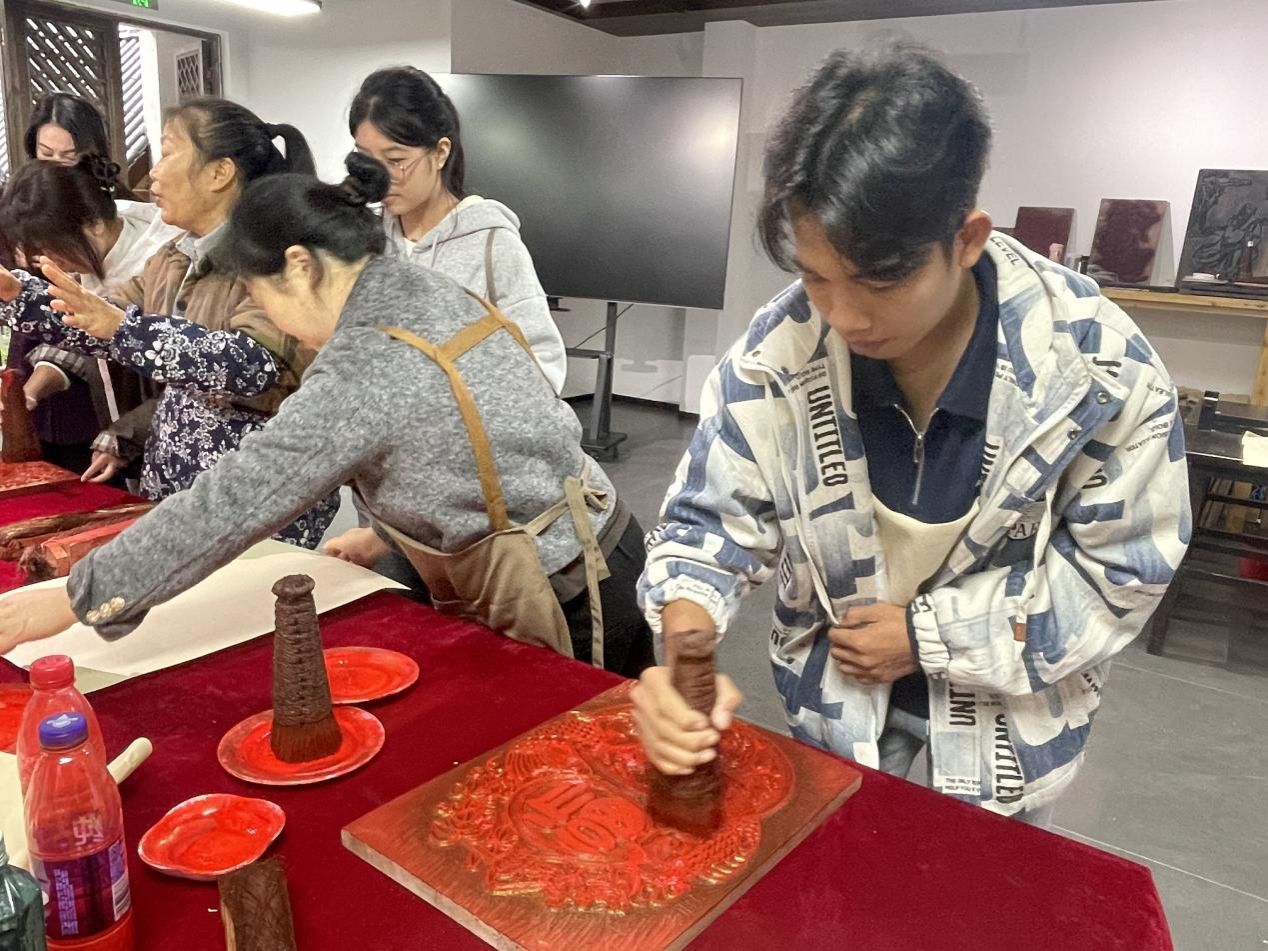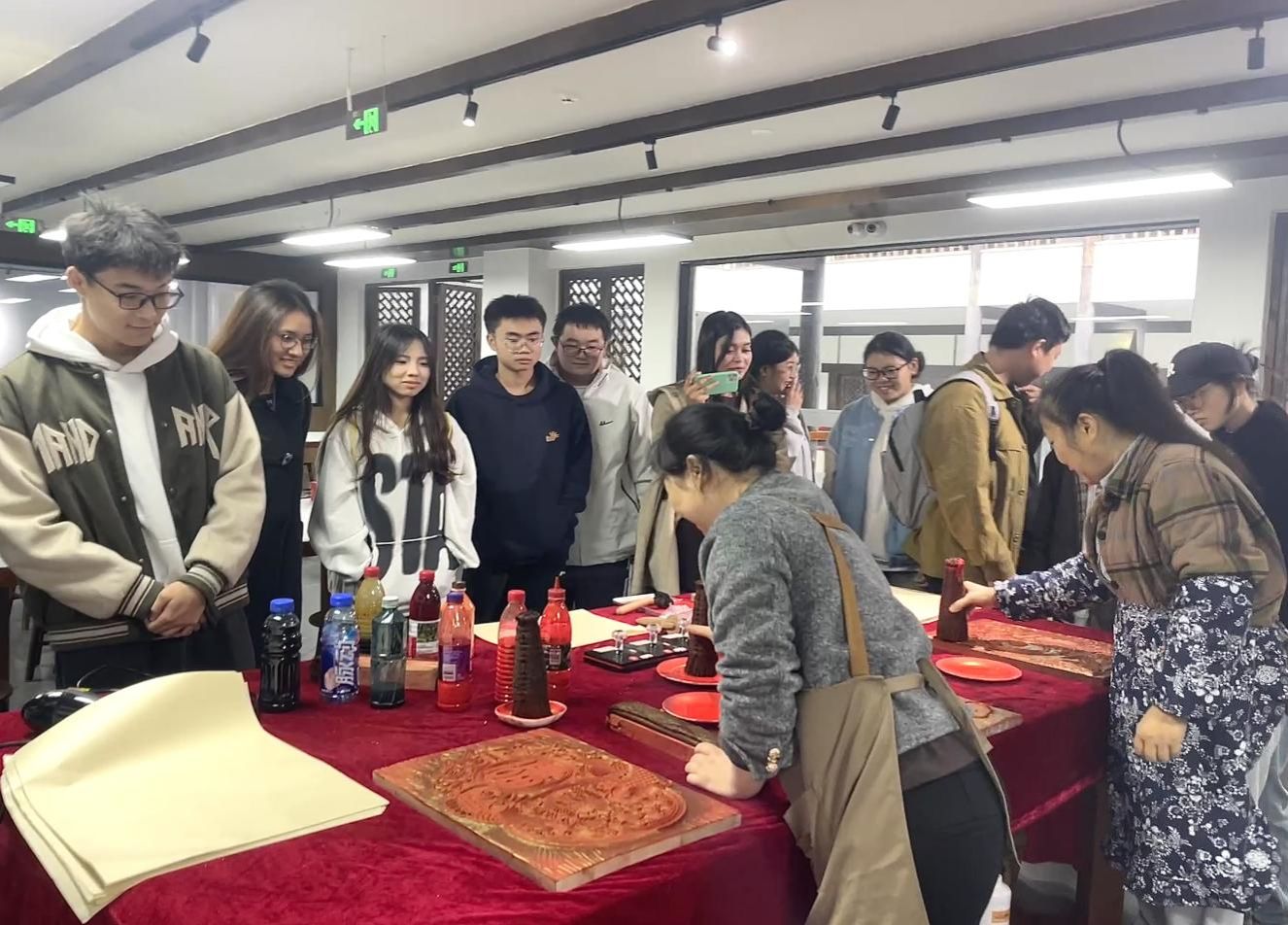 为深化学生对中华优秀传统文化的认知与理解,推动中外文化交流互鉴,2025 年 10 月 29 日,护理康养学院学生在李姝环、白熠皓两位老师的带领下,前往乐山夹江年画非物质文化遗产馆(以下简称 “非遗馆”)开展研学实践活动。此次活动亦吸引我院多名留学生积极参与,为这项古老的年画技艺注入了鲜活的国际活力。