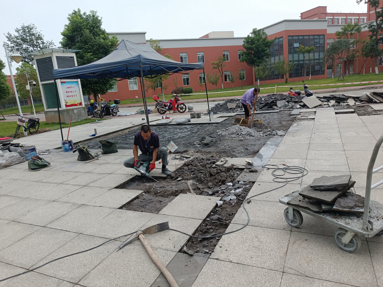 为确保校园安全,检查并维修维护校园建筑物及道路(瓷砖掉落、墙体裂缝、路面破损等);组织对高压配电设备进行维护保养;联系燃气公司对学校燃气安全使用做全面检查,维修维护锈蚀的燃气管道;对接礼堂舞台机械设备安装单位,落实专业设计单位对新增荷载做安全验算;做好汛期校园排水等安全工作。同时,配合海天公司推进校园汽车充电桩、电瓶车充电设施的建设