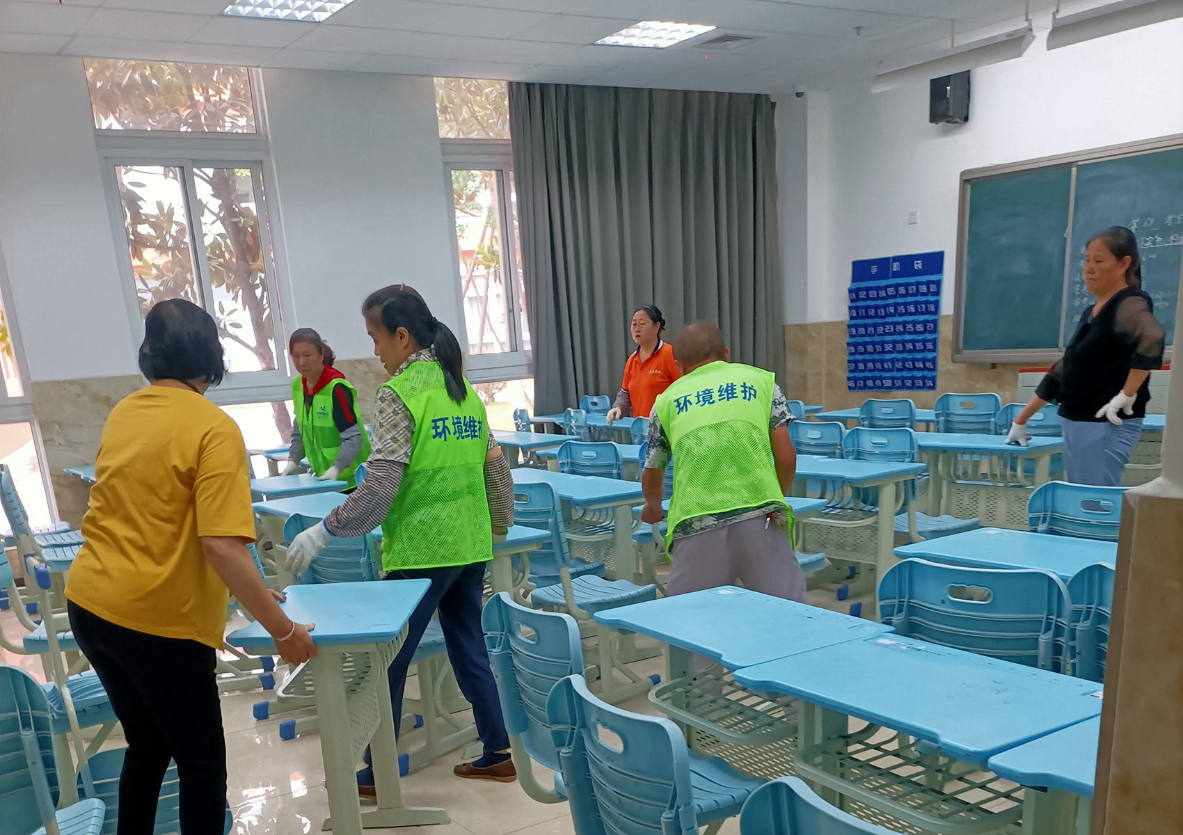 为营造整洁的校园环境,组织对校园区域、教学办公楼宇、体育场馆、观景水池等公共场所及重点区域进行了全方位打扫消毒,保证清洁卫生无死角。