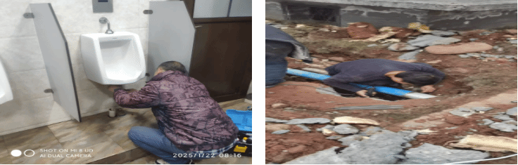 检查并维修维护校园剥落的墙面、破损的路面、脱落的瓷砖,组织对高压配电、电梯设备进行维护保养,联系燃气公司对学校燃气安全使用做全面检查,维修维护锈蚀的燃气管道。