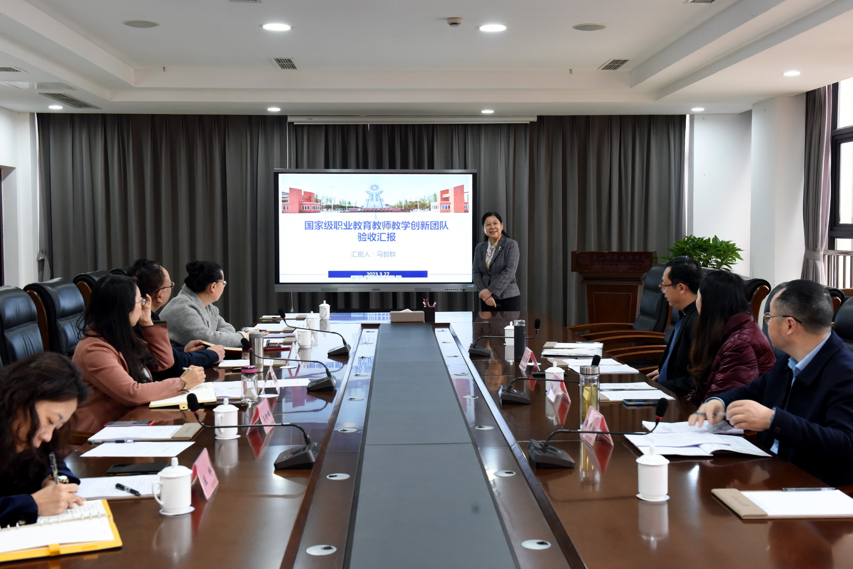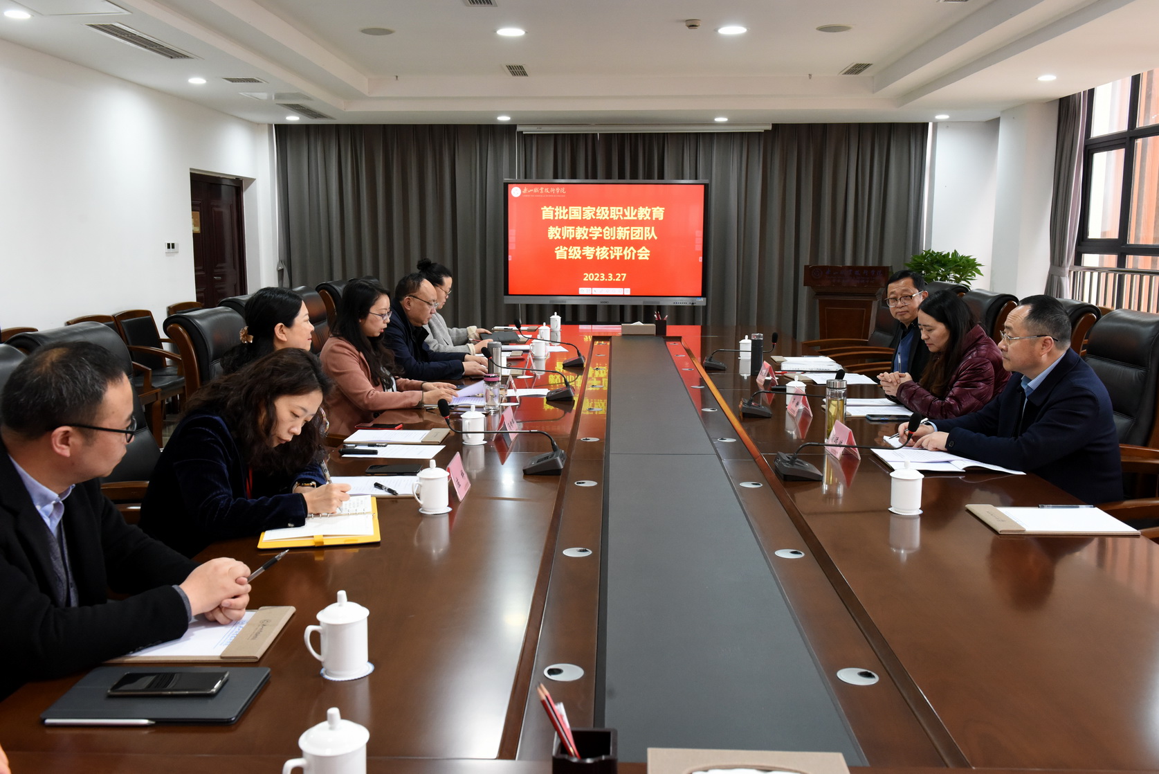 2023年3月27日上午,首批国家级职业教育教师教学创新团队省级专家评审组一行3人到我院开展实地考核。学院副院长周芹,人事处、护理学院等相关单位负责同志及国家级教师教学创新团队核心成员参加了本次评审会。
