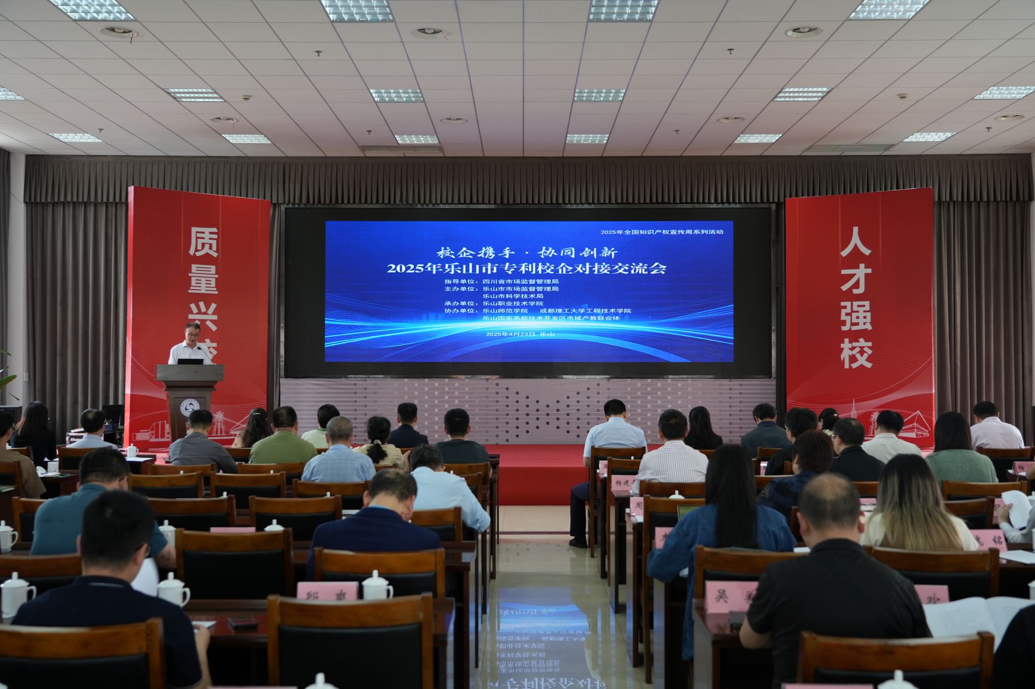 4月23日,由四川省市场监督管理局指导,乐山市市场监督管理局、乐山市科学技术局主办,8797威尼斯老品牌承办、乐山国家高新技术产业开发区产教联合体协办的 “校企携手・协同创新” 乐山市知识产权校企对接交流会在8797威尼斯老品牌顺利举行。此次活动作为2025年全国知识产权宣传周系列活动的重要组成部分,旨在搭建校企合作桥梁,推动专利转化运用,助力科技创新与产业升级。来自省、市相关部门领导、高校专家学者、企业代表等150余人参加会议。