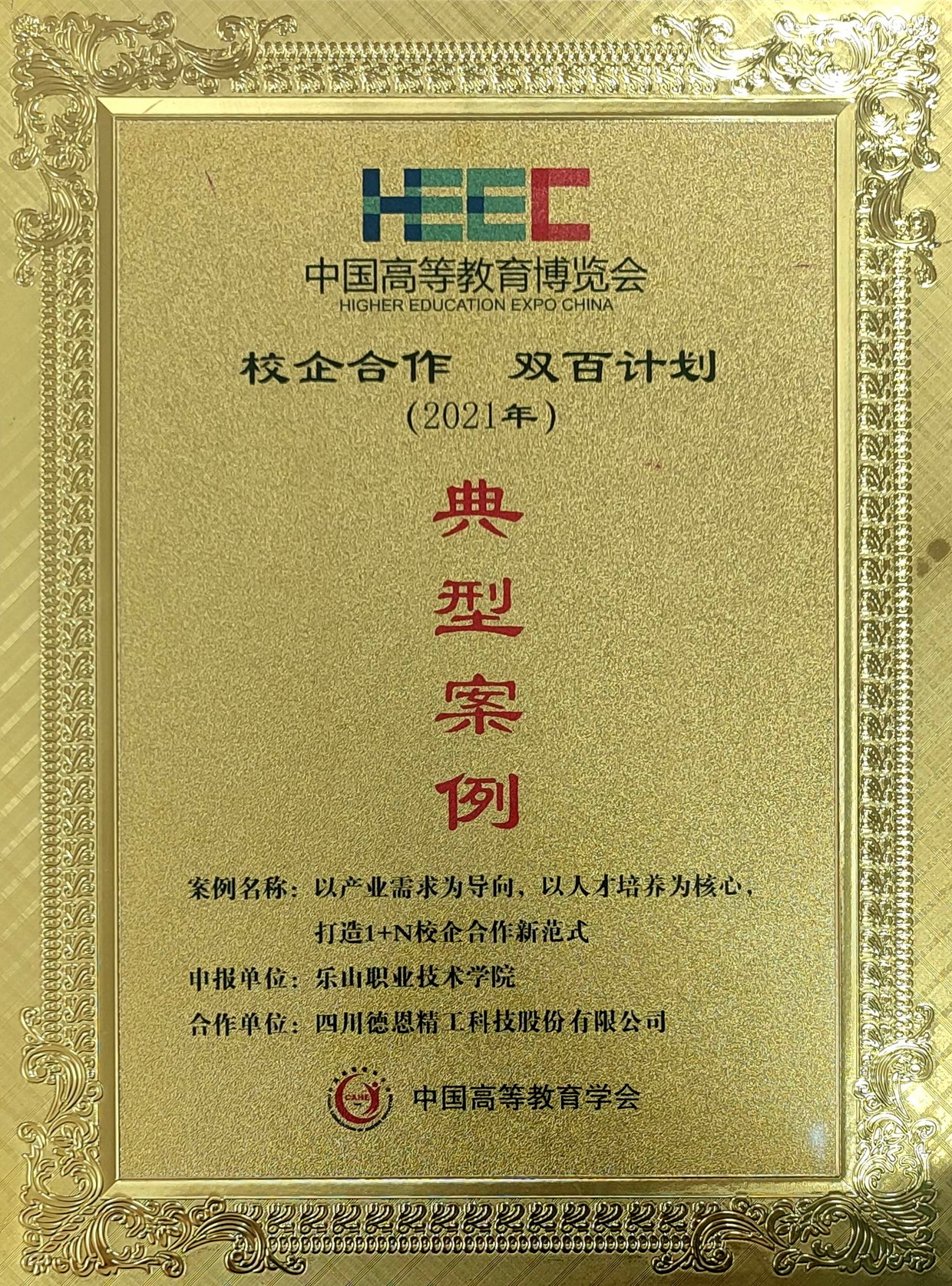 机电工程系《以产业需求为导向,以人才培养为核心,打造1+N校企合作新范式》校企合作案例,以四川德恩精工、乐山启航精密模具深度校企合作为依托,以学院为中心,N个(企业)行业领先的智能制造企业为合作伙伴,校企共同打造结构优化的高水平的创新教学团队,共建企业技术工作室,共建高水平的产教融合实训基地,培养智能制造紧缺的高素质技术技能人才。