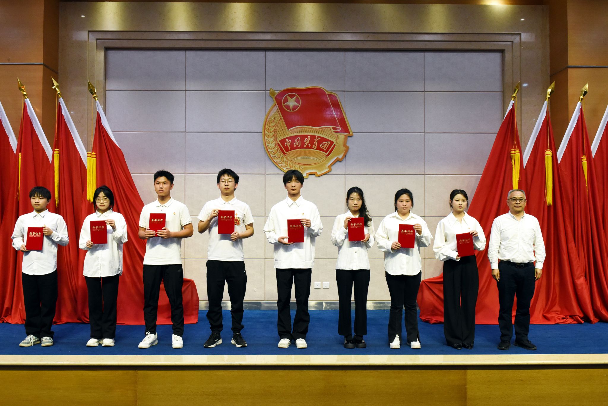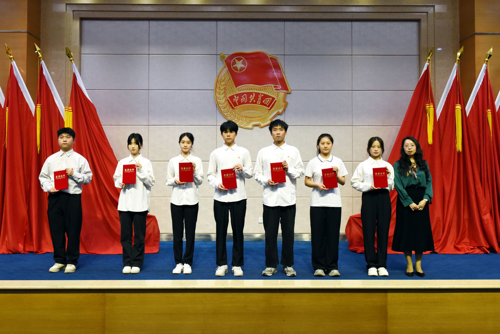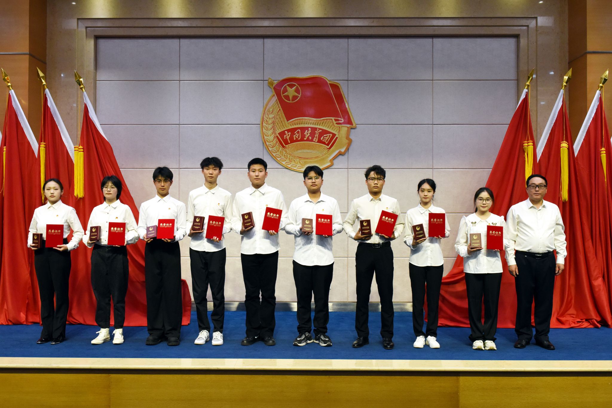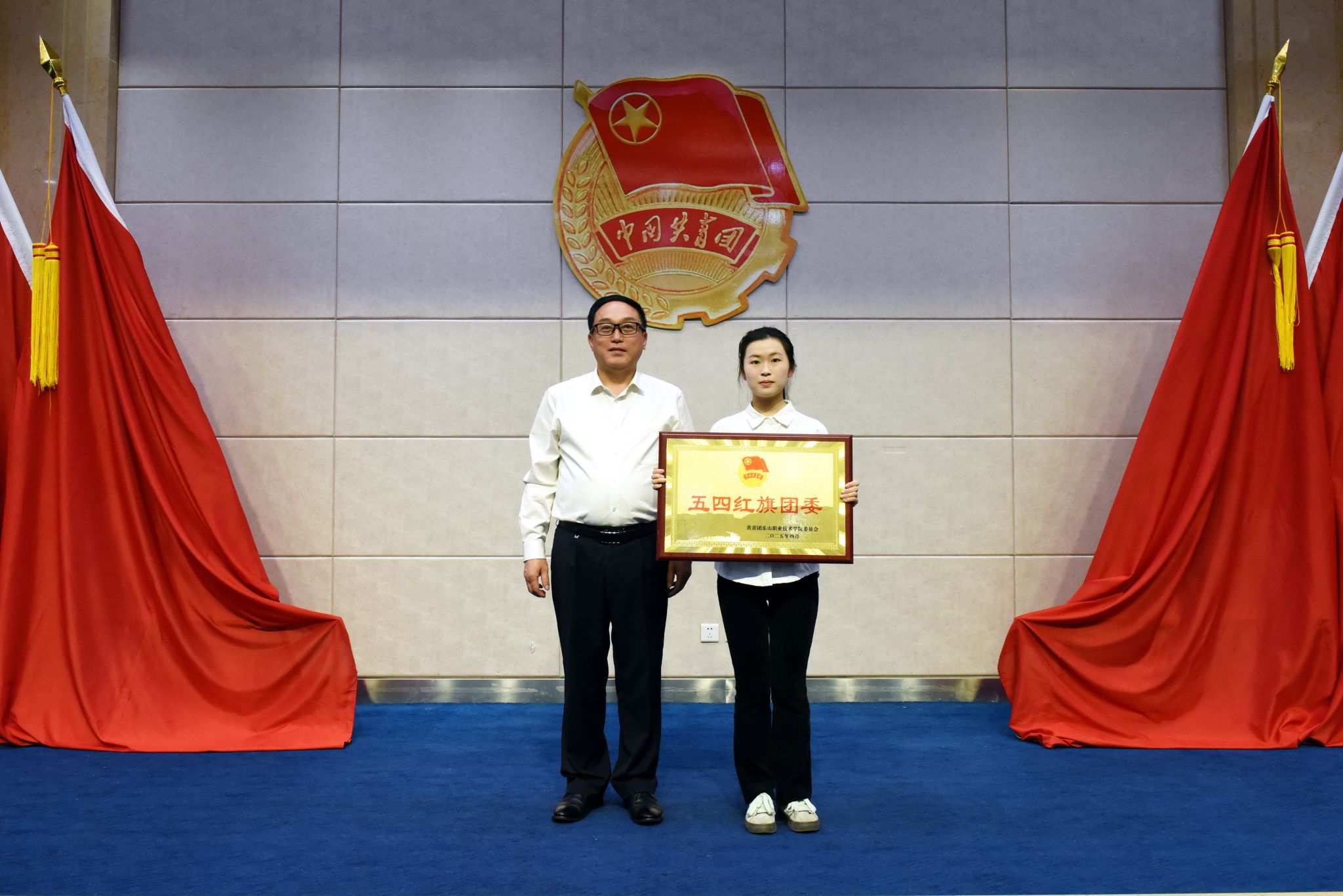 成定彬为“青年五四奖章”获得者颁发奖章和证书