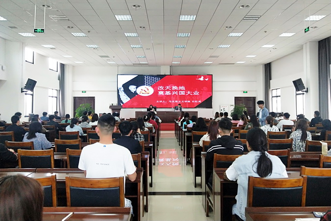 本次报告会以“改天换地 奠定兴国大业”为主题,开展“新中国史”主题教育,用翔实的数据、具体的案例、生动的图片等形式,讲述了1949年中华人民共和国成立到1956年基本完成社会主义改造的重大历史事件,包括新中国成立之初民主革命的遗留任务、执政之初党的考验和党的任务、抗美援朝、全面恢复国民经济、全国人民代表大会“一大”的召开、三大改造与社会主义制度的确立等,深刻阐述这段历史的重大历史意义。