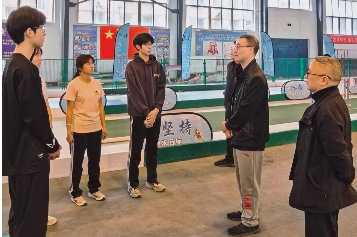 考察中,刘忠与集训中的乐职学子亲切交流,介绍了学校小金属球的发展历史、未来规划及乐山共建掷球国家集训基地打造情况。