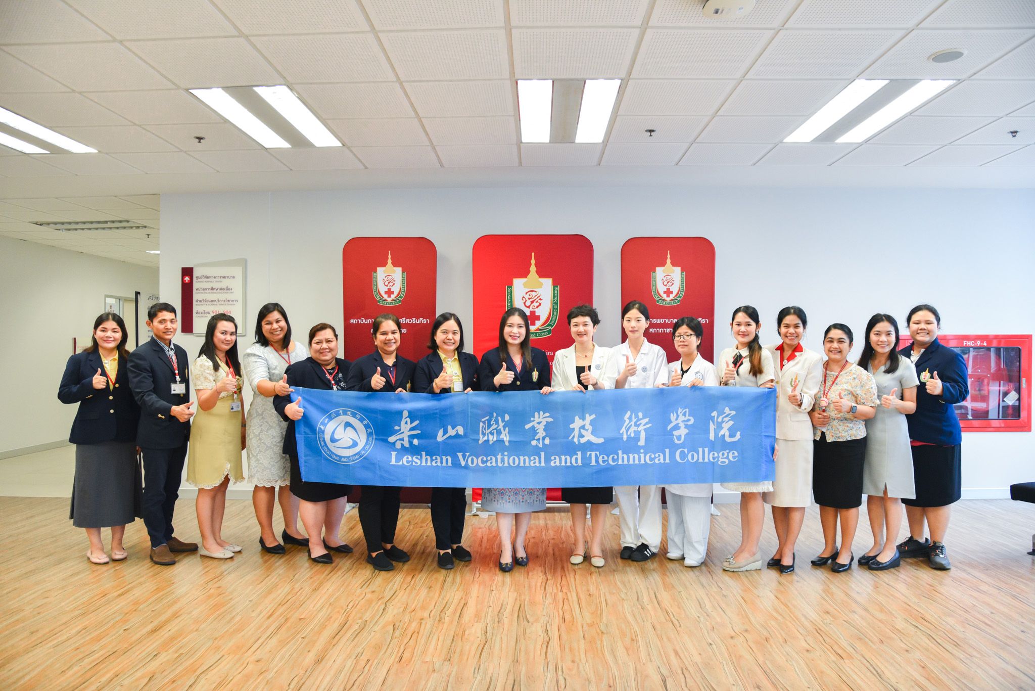 次日清晨,恰逢泰国红十字护理学院新学期开学典礼,代表团获至高殊荣——泰国诗琳通公主殿下亲自接见。诗琳通公主对远道而来的中方师生致以热烈欢迎,充分彰显对中泰教育交流的高度重视。此次交流期间,彭麒燕老师将带领交换生开展多元活动,涵盖实训室观摩、文化互动、医院临床实践等领域。彭麒燕老师两周后返程,两位交换生将继续完成为期两个月的交换学习。