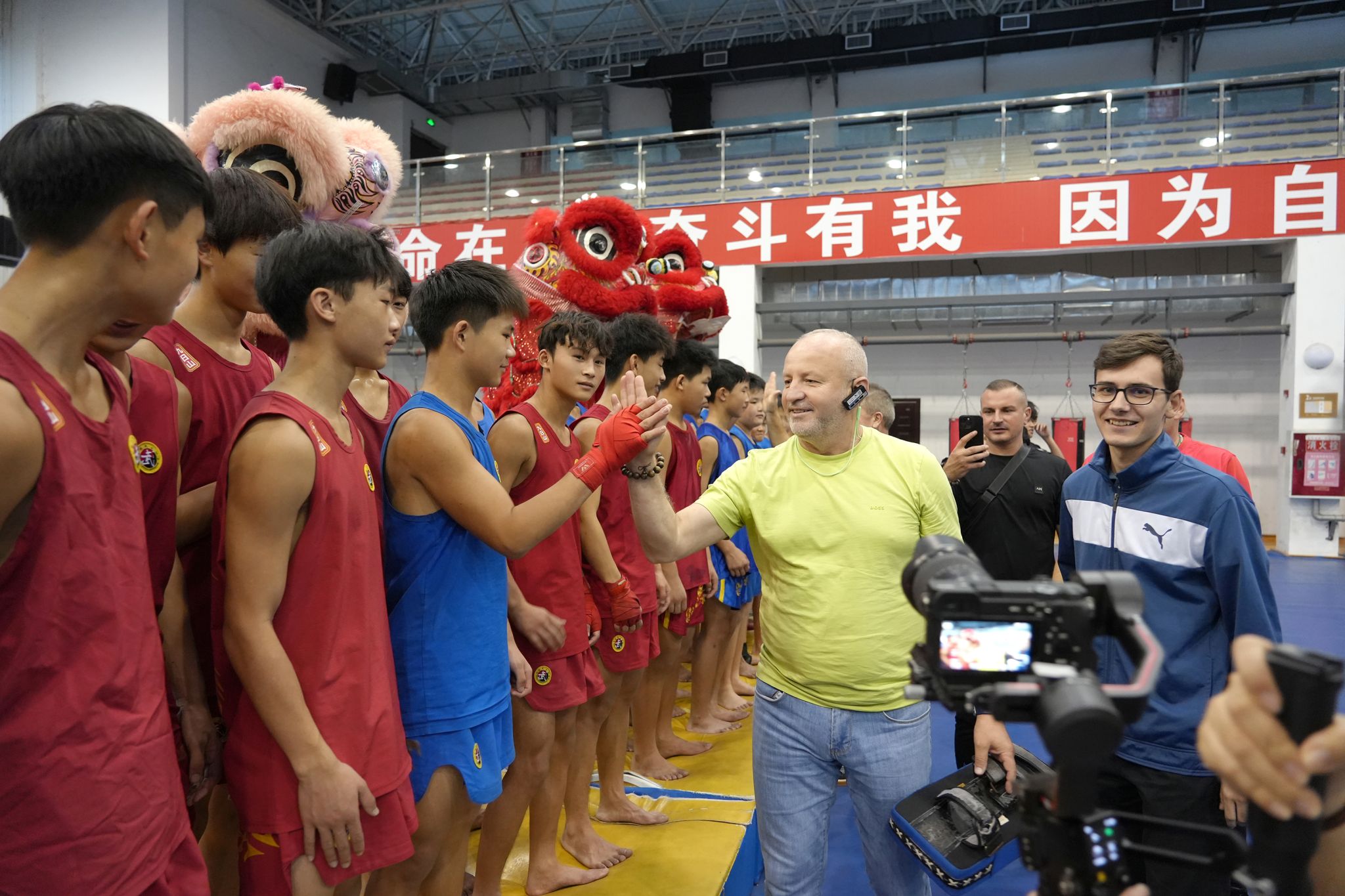代表团一行首先来到青江武术基地,观摩了武术套路、散打对抗及舞狮表演。外宾们对刚柔并济的中华传统武术和热闹喜庆的舞狮文化表现出浓厚兴趣,不时驻足欣赏、拍照记录,对师生们精湛的技艺表示赞叹。
