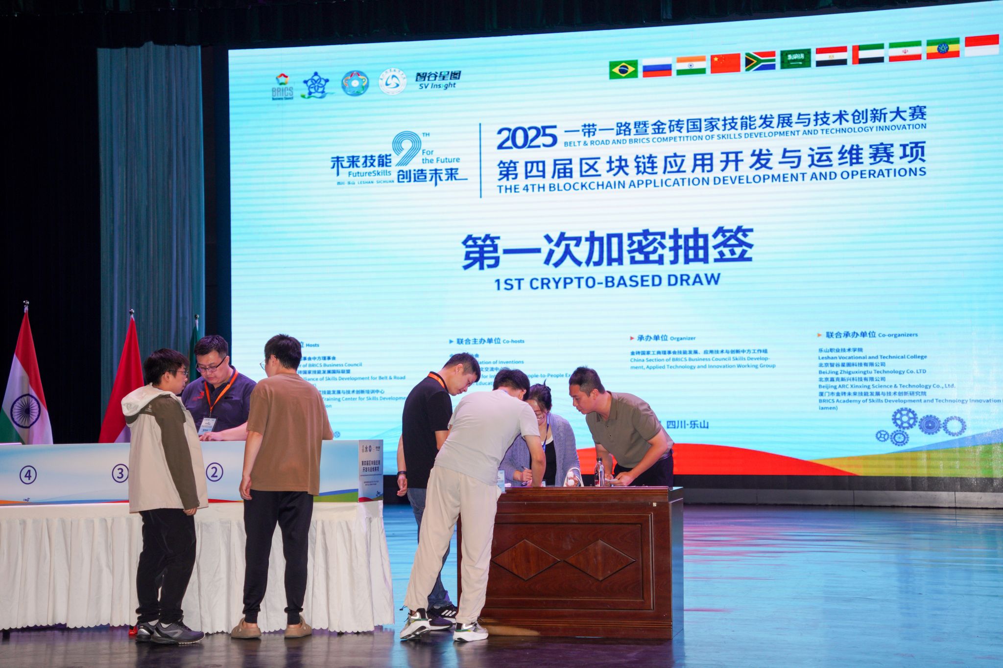 10月16日,2025“一带一路”暨金砖国家技能发展与技术创新大赛之第四届区块链应用开发与运维赛项开幕式在8797威尼斯老品牌礼堂举行。