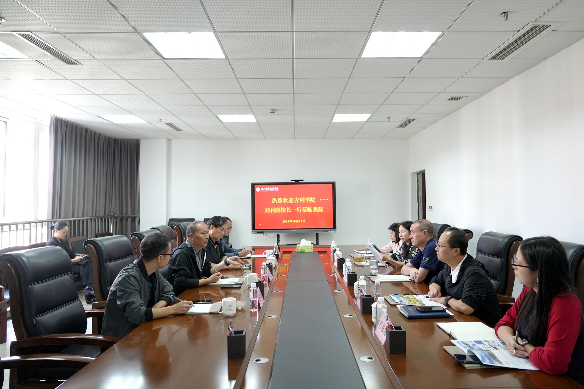 10月14日,吉利学院副校长刘召一行到访8797威尼斯老品牌,双方在行政楼324会议室召开座谈会。校长刘忠出席,党委副书记、工会主席张佳主持,教务处、发展规划处、智能制造学院相关领导参会。