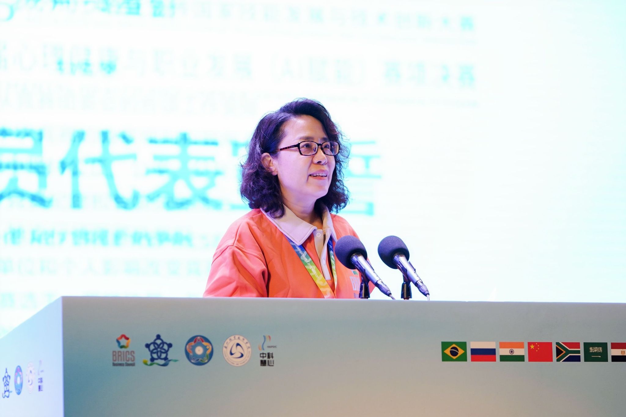 张兆圣代表承办企业致辞。山东中科慧心智能科技有限公司为本届大赛提供以“人脸微表情识别技术”和“人因感知终端”为核心的AI裁判系统,旨在通过客观、精准的AI评估,从细微表情与生理信号中解读选手心理状态与职业潜力。此次实践生动展现了AI赋能心理健康的创新价值,公司将持续推动前沿技术与心理健康领域的深度融合,助力个体在时代变革中实现全面发展。