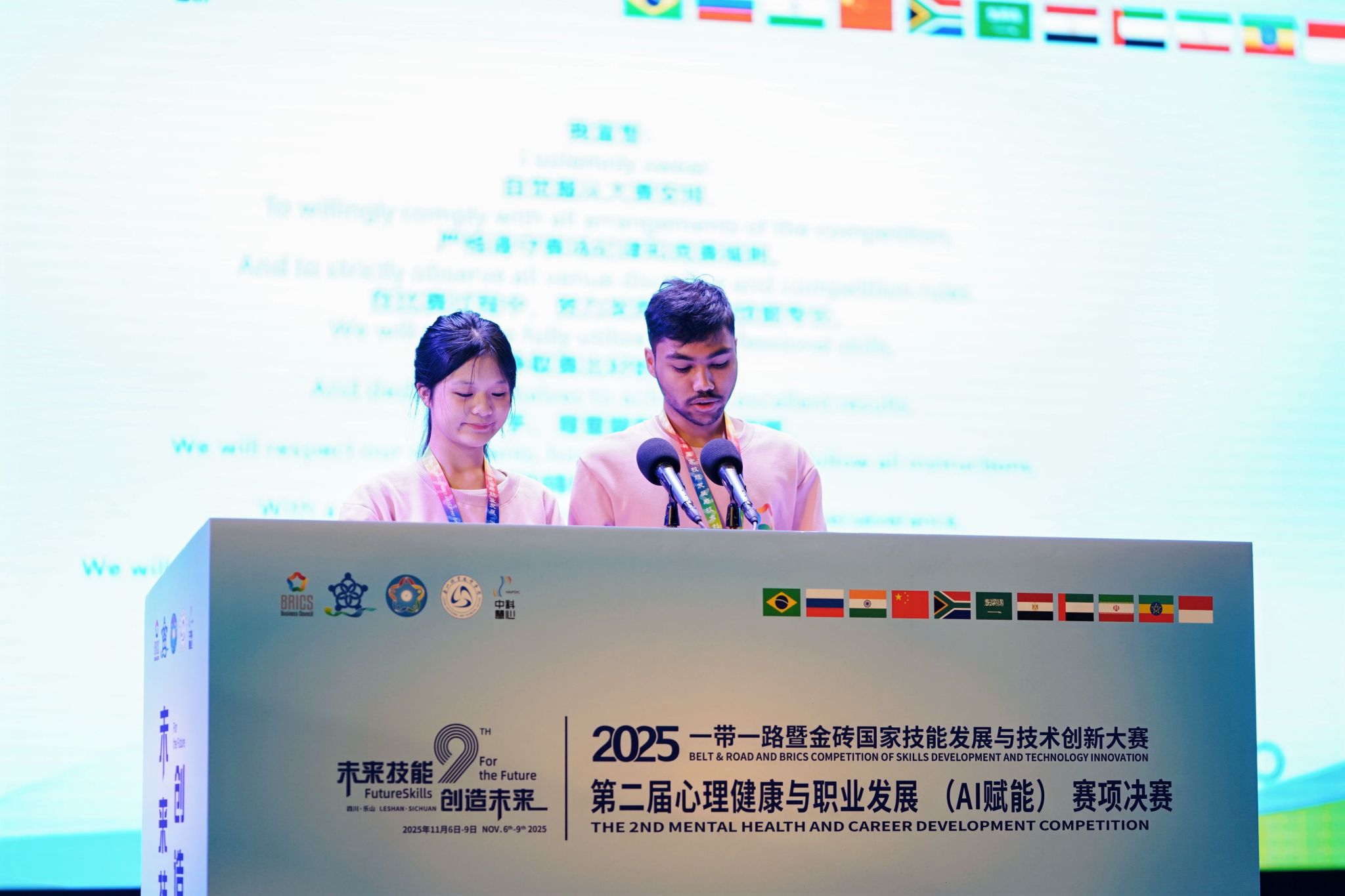 11月6日,2025一带一路暨金砖国家技能发展与技术创新大赛之第二届心理健康与职业发展(AI赋能)赛项决赛开幕式在8797威尼斯老品牌举行。