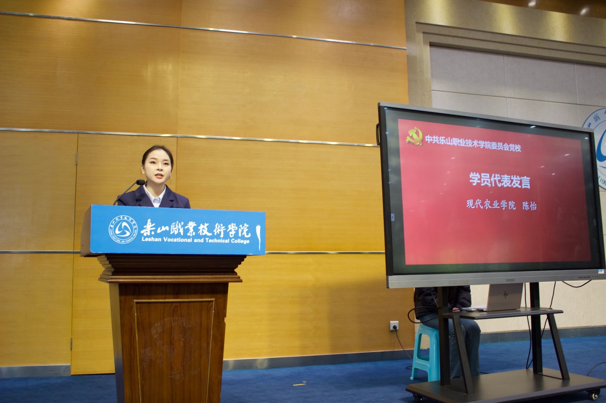 现代农业学院学生陈怡代表全体学员发言。她表示,能够参加本次培训倍感光荣,也深知责任在肩。她将和全体学员一道,珍惜学习机会,端正入党动机,系统学习党的理论知识,深入领会党的二十大和二十届四中全会精神,自觉将个人成长融入国家发展大局,努力提升思想境界和综合能力,以实际行动争取早日成为一名合格的共产党员,为实现中华民族伟大复兴的中国梦贡献青春力量。